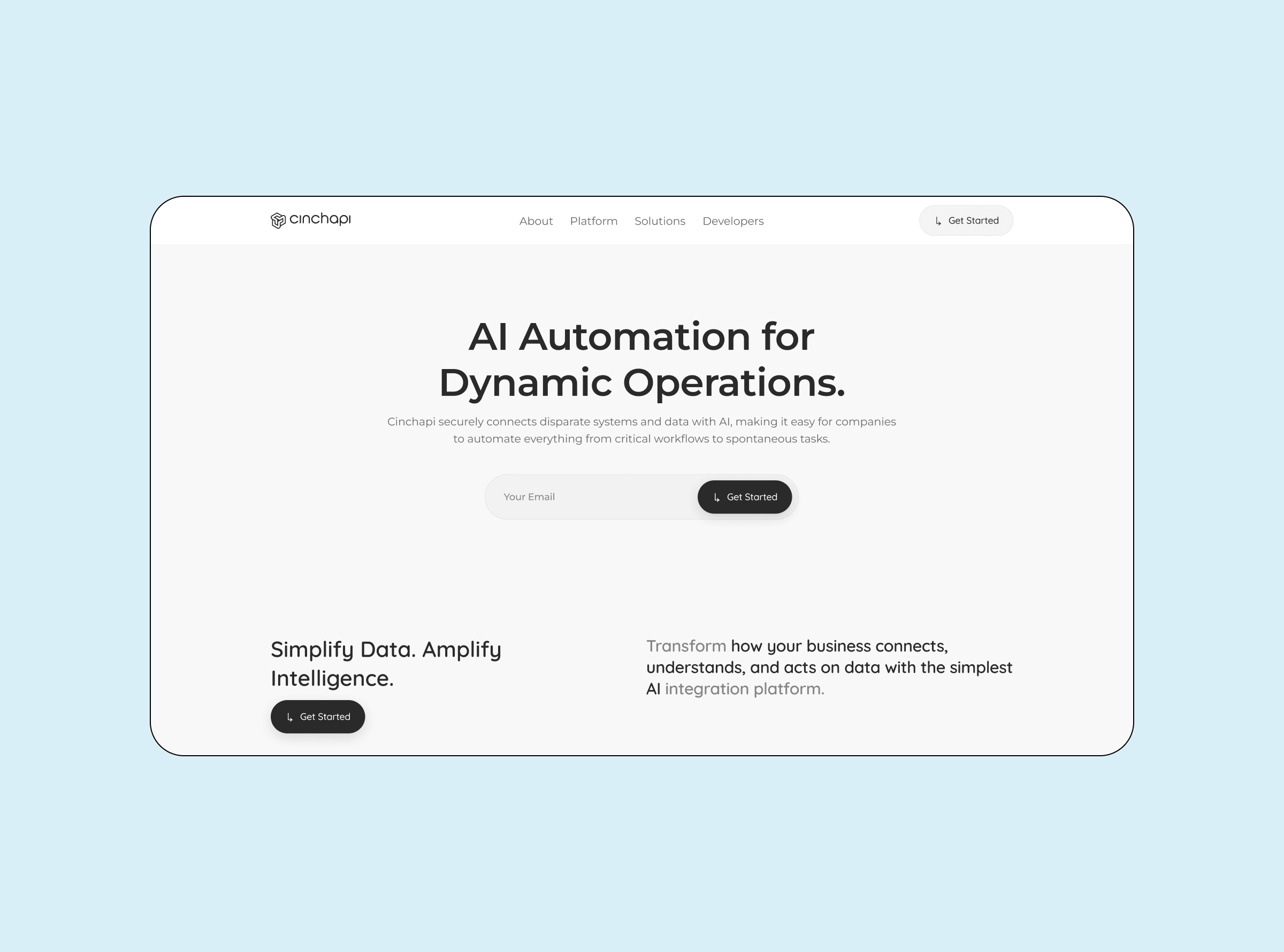 A landing experience that turns complexity into confidence. Visitors immediately understand what Cinchapi offers, who it serves, and where to go next. The hover-driven navigation reduces clicks, the modular sections support fast iteration, and the design scales gracefully across enterprise, developer, and partnership use cases.